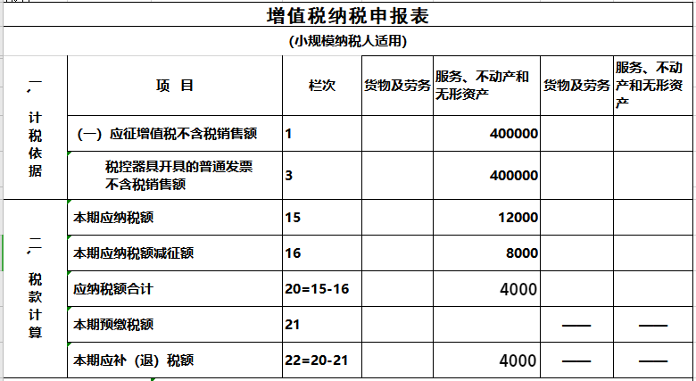 對(duì)應(yīng)減征的增值稅應(yīng)納稅額按銷(xiāo)售額的2%計(jì)算填寫(xiě)在《增值稅納稅申報(bào)表(小規(guī)模納稅人適用)》“本期應(yīng)納稅額減征額”及《增值稅減免稅申報(bào)明細(xì)表》減稅項(xiàng)目相應(yīng)欄次。