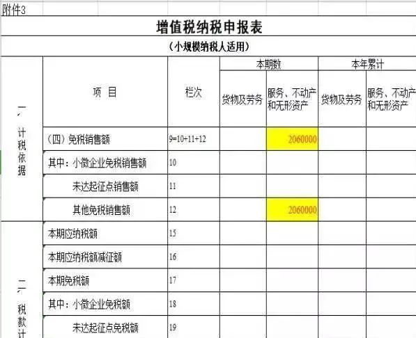 提醒:餐飲行業(yè)填報(bào)的時(shí)候選擇《增值稅納稅申報(bào)表(小規(guī)模納稅人適用)》第12欄“其他免稅銷(xiāo)售額”相關(guān)列次,填報(bào)免稅銷(xiāo)售額,并在《增值稅減免稅申報(bào)明細(xì)表》中選擇正確的免稅代碼,填寫(xiě)相關(guān)列次。