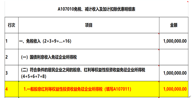 4、由于稅法對(duì)符合條件的股息、紅利等權(quán)益性投資收益給予免稅待遇,因此只需要填報(bào)A107011、A107010申報(bào)表來反應(yīng)投資收益免征企業(yè)所得稅。