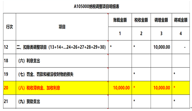 2019年匯算清繳的時(shí)候,社保滯納金1萬元這樣填報(bào)是否正確?