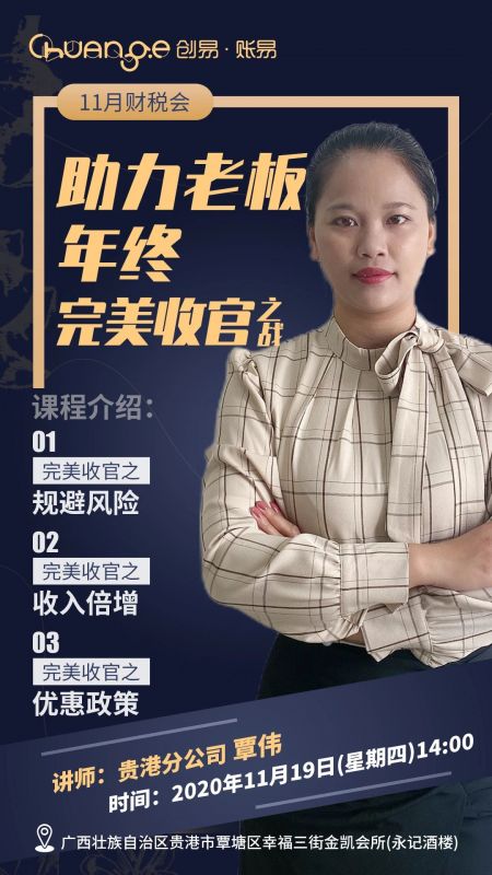 財稅講師覃偉為客戶朋友們講解新政,從優(yōu)惠政策、收入倍增、規(guī)避風(fēng)險三個維度助力老板年終完美收官!