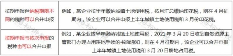 不同納稅期限的財(cái)產(chǎn)和行為稅各稅種可以合并申報(bào)。