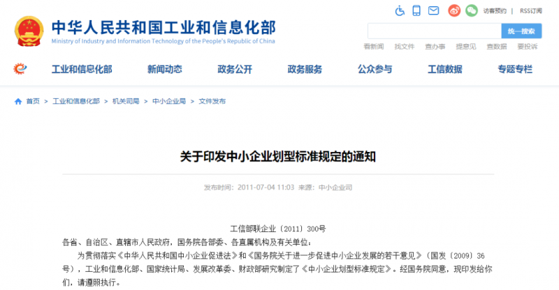 在《中小企業(yè)劃型標(biāo)準(zhǔn)規(guī)定》(工信部聯(lián)企業(yè)〔2011〕300號)我們可以看到清晰明確的劃分標(biāo)準(zhǔn),有需要的朋友可以點擊下方圖片跳轉(zhuǎn)鏈接進行查詢比對。